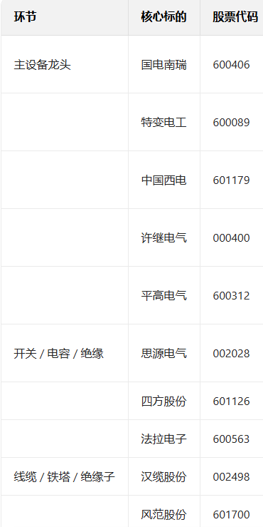 1)主设备龙头(国电南瑞、特变电工、中国西电),业绩确定性强、壁垒高;2)出口弹性标的(特变电工、保变电气),受益全球缺口;3)技术突破型企业(许继电气、思源电气),国产替代空间大。