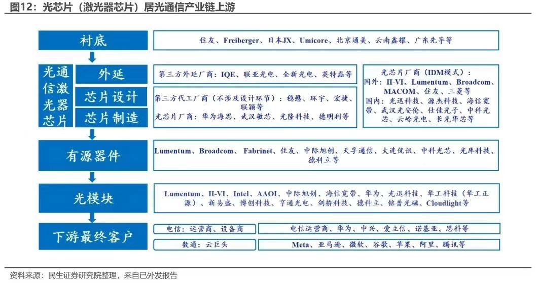 目前光芯片可以在人工智能、医疗诊断、激光雷达、工业自动化等领域发挥着关键作用。同时,随着5G通信的商用化和物联网的普及,光芯片在移动通信、无线网络和智能设备中的应用也愈发重要。总的来说,光芯片市场规模的增长和其在各个下游应用领域的占比提高,都反映了光电子技术在现代通信和信息领域的关键地位,以及其在推动科技进步和社会发展中的不可或缺性。