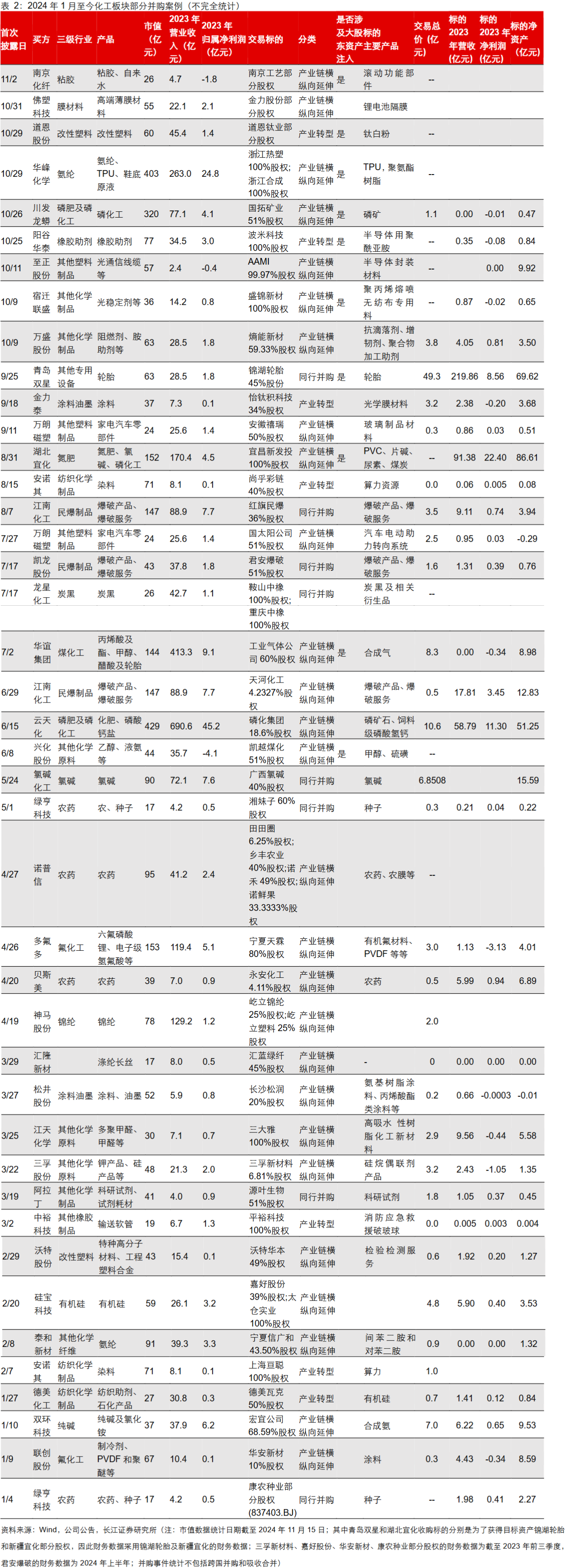研报来源:长江证券,马太,S0490516100002,化工专题:并购重组有哪些方向?2024年11月20日