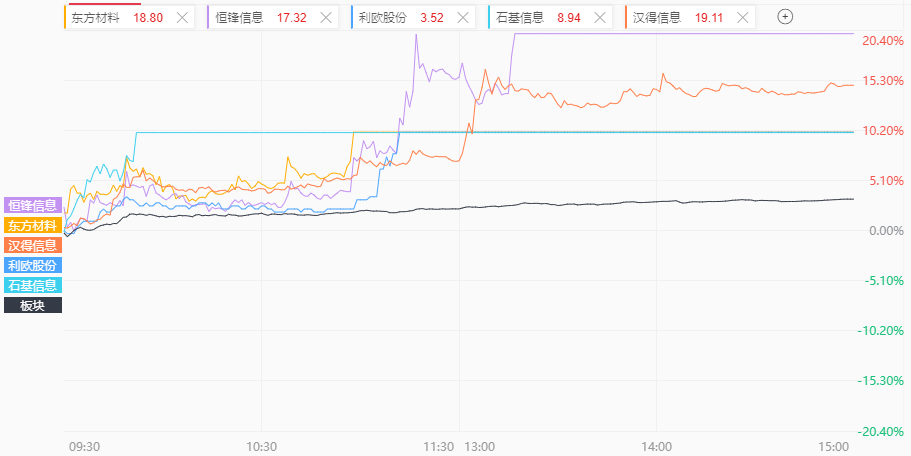 AI智能体局部大涨,东方材料、恒锋信息(20CM)、利欧股份、石基信息等涨停,汉得信息、卓易信息、博瑞数据、福昕软件、合合信息、锦鸡股份等集体大涨;