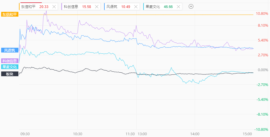 五新隧装(30CM)、筑博设计(20CM)、冠龙节能(20CM)、铁建重工(20CM)、西藏旅游、高争民爆、西藏天路、保利联合、易普力、中国能建、华新水泥、中国电建、中岩大地、法兰泰克、苏博特、中铁工业、东方电气等集体一字涨停;