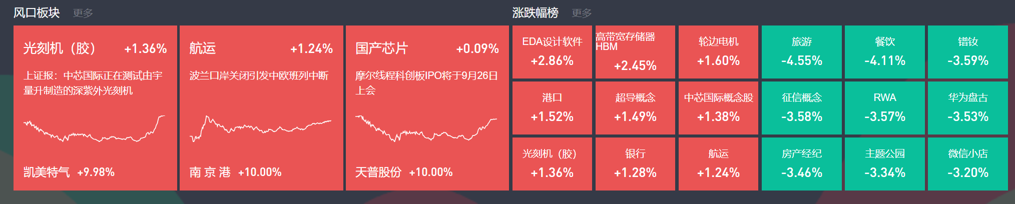 除上述热点外,存储、机器人等继续活跃;跌幅方面,旅游、影视、医药等跌幅居前。