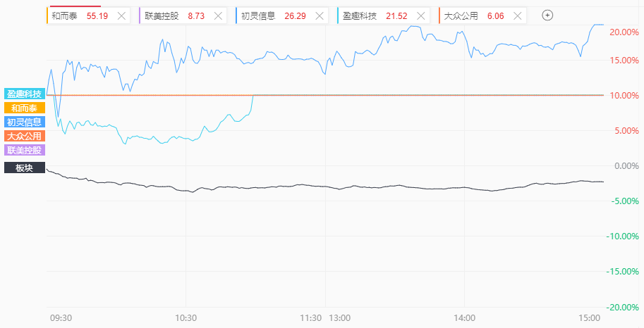 独角兽IPO概念股持续走强,和而泰、联美控股、初灵信息(20CM)、盈趣科技、大众公用、超讯通讯集体2连板;