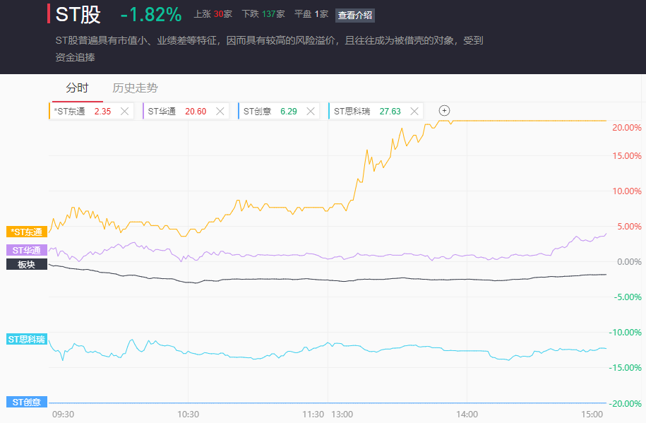 随着这两个ST的新人登场,上一个暴雷“脚踝斩”的*ST东通今天反弹拿下20CM涨停。