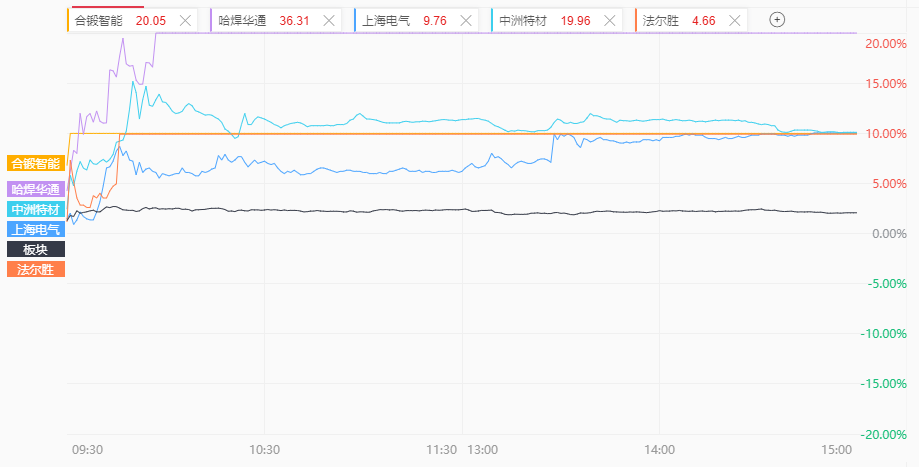 可控核聚变、超导概念开盘走强,合锻智能、哈焊华通(20CM)、上海电气涨停,中洲特材涨超10%,常辅股份、永鼎股份、旭光电子、联创光电等走强;