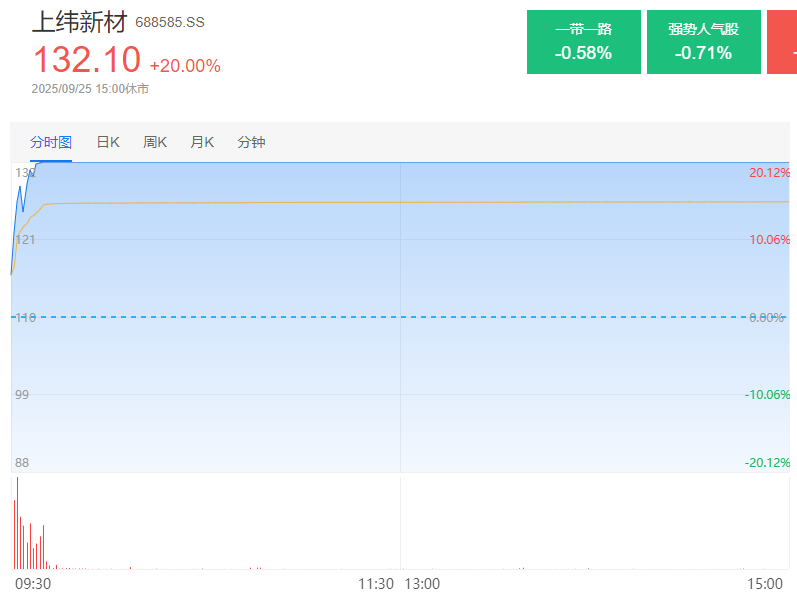 结果,今天上纬新材再度高开,开盘后不到10分钟就封死2连板,再度刷新历史新高。