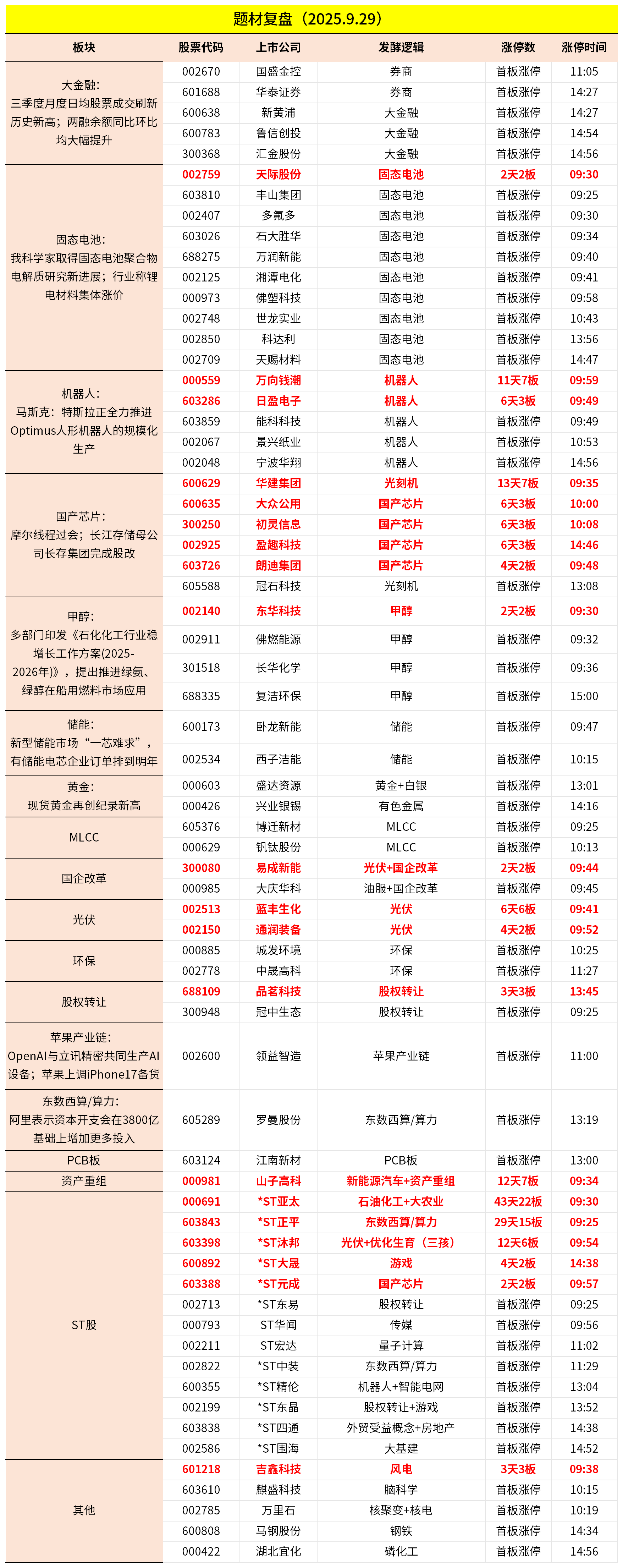 除上述热点外,储能、机器人、甲醇都有活跃;跌幅方面,连板断板股跌幅居前。