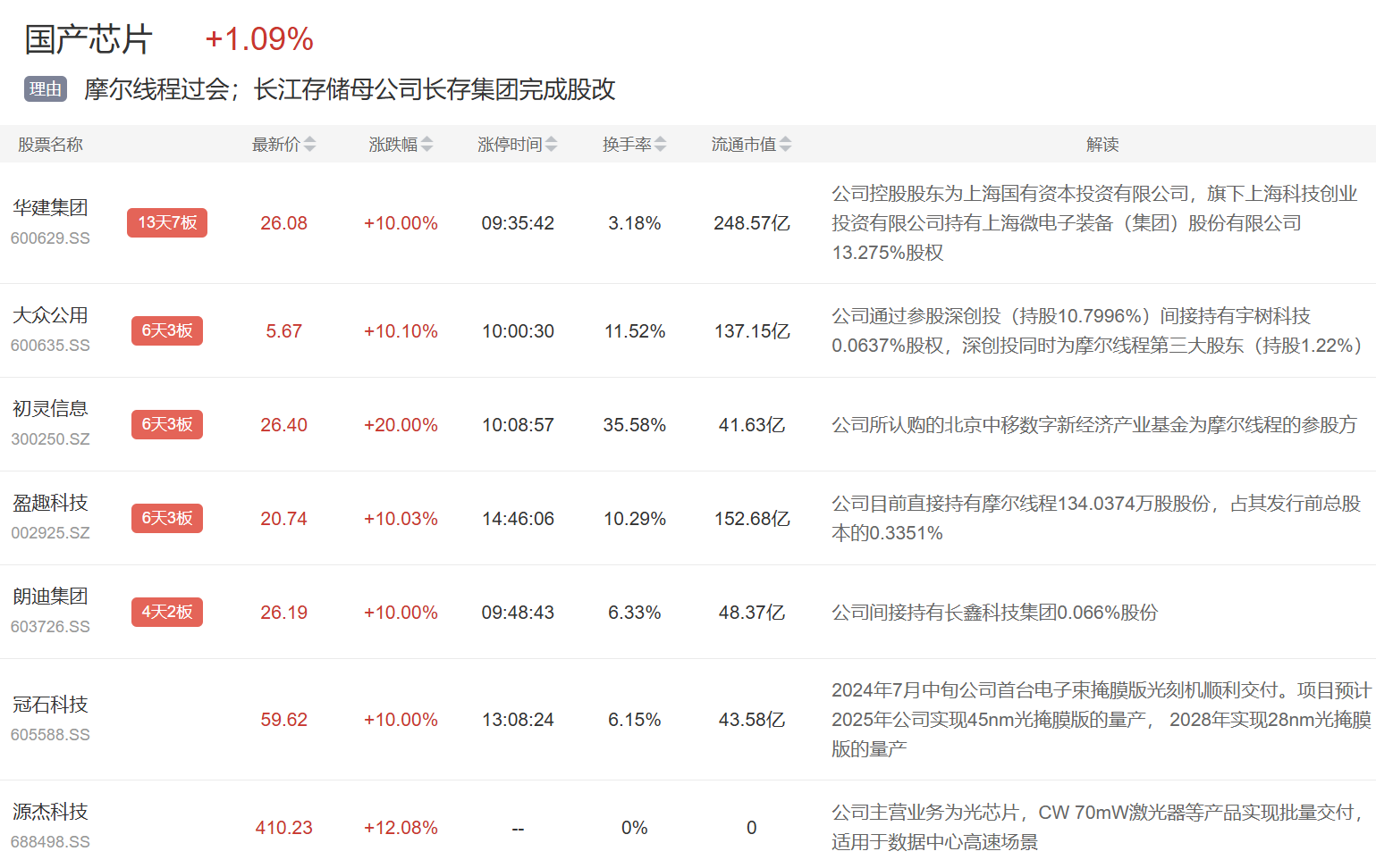 国产芯片板块今日继续活跃,华建集团3连板,大众公用、盈趣科技等多股反包。