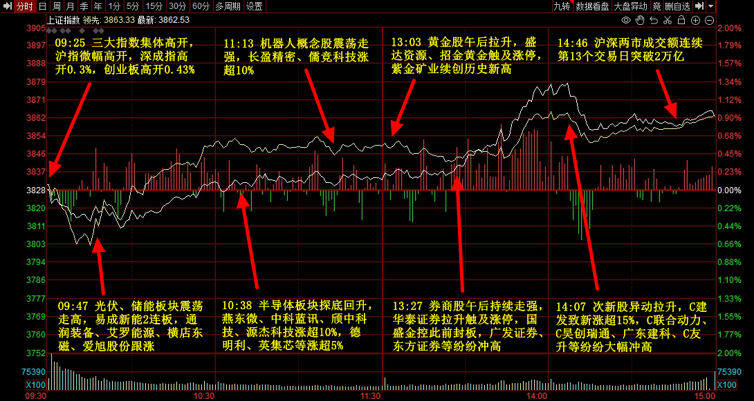 指南针、东方证券、东方财富、同花顺、财富趋势、银之杰等集体大涨;