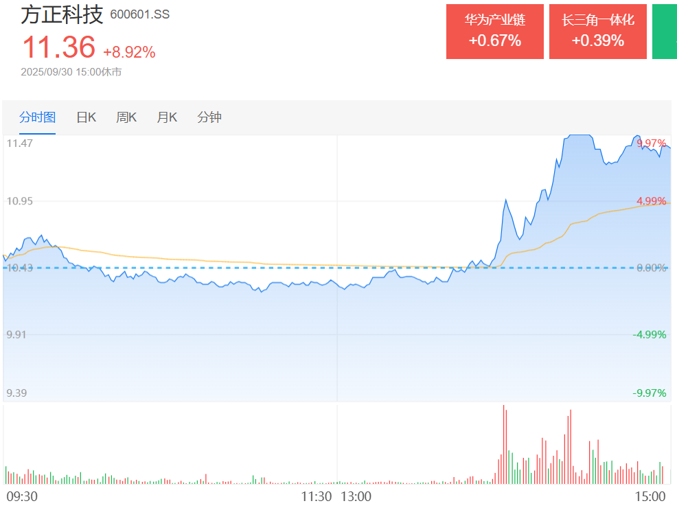 然后我就看着方正科技旱地拔葱的拉升,稍作调整后第二波拉升拿下涨停板。