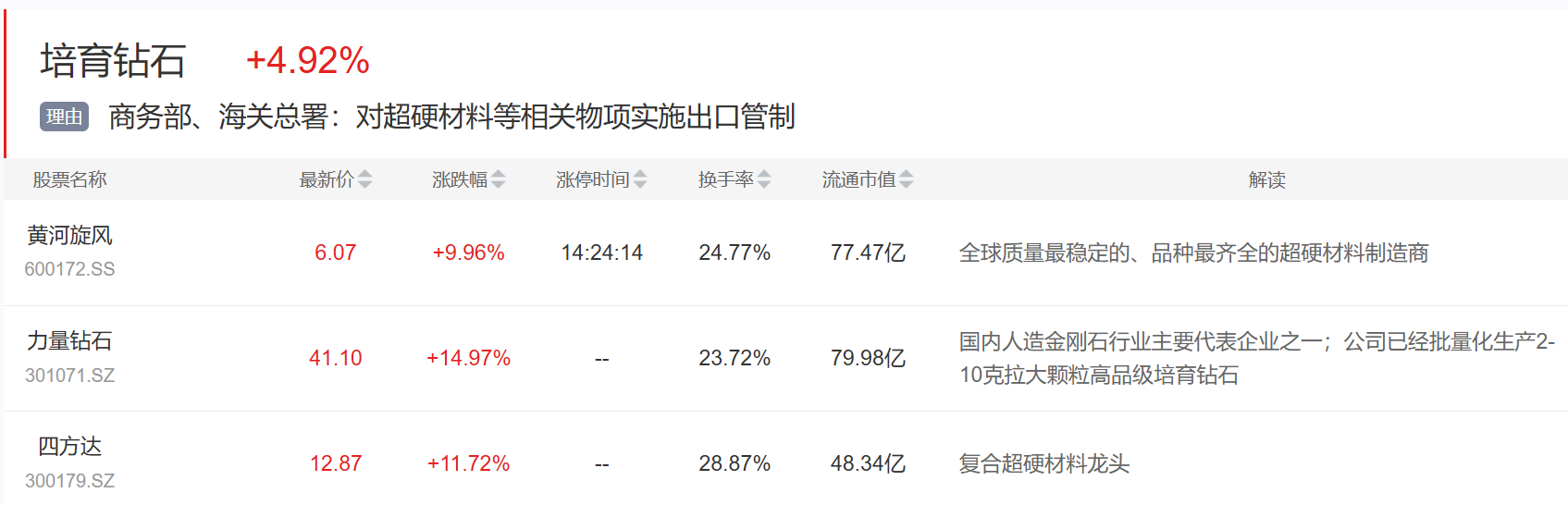 催化上,10月9日,商务部会同海关总署发布关于对超硬材料等相关物项实施出口管制措施的公告,将于11月8日正式实施。