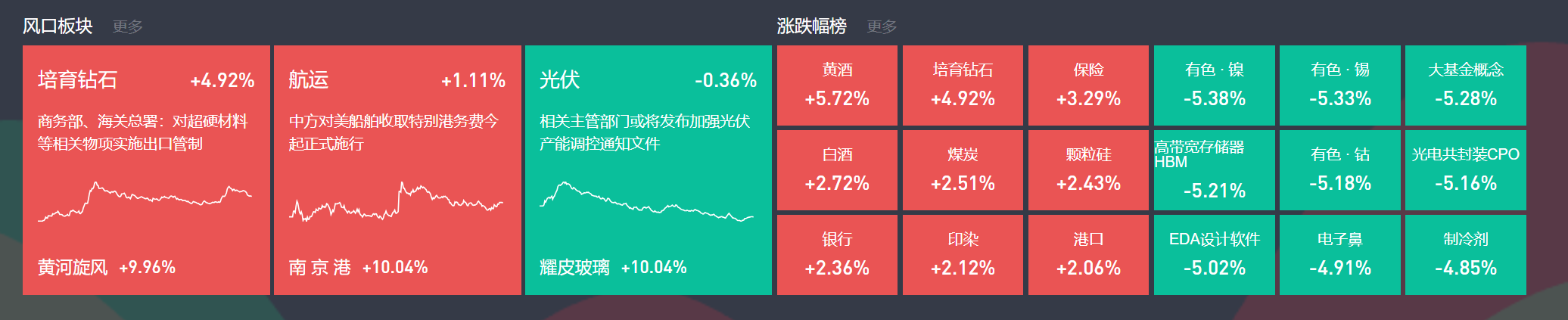 除上述热点外,核聚变、国产芯片分化,大消费、煤炭局部活跃;跌幅方面,存储、液冷、机器人等跌幅居前。