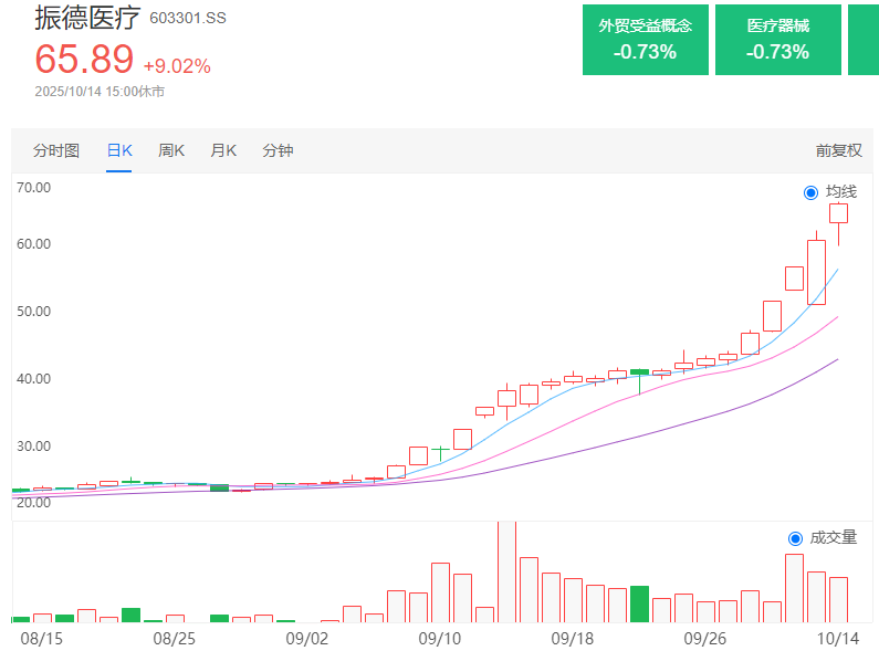 国庆节后4个交易日,振德医疗累计涨幅超40%。