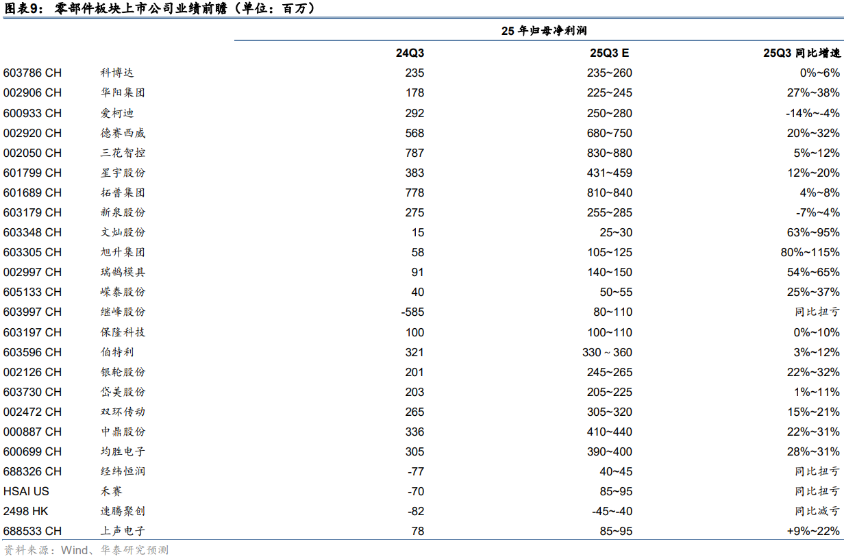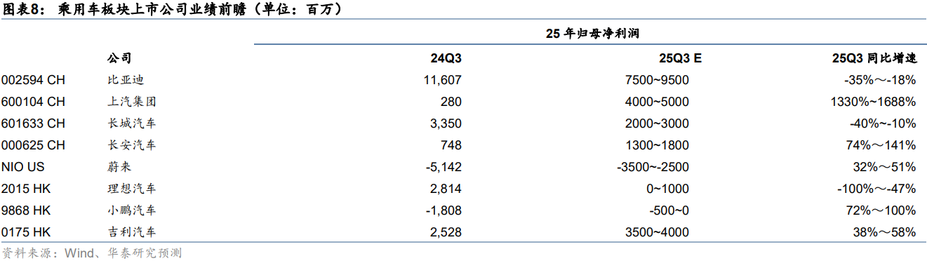 华泰证券研报对汽车与零部件板块Q3业绩进行了前瞻预测。