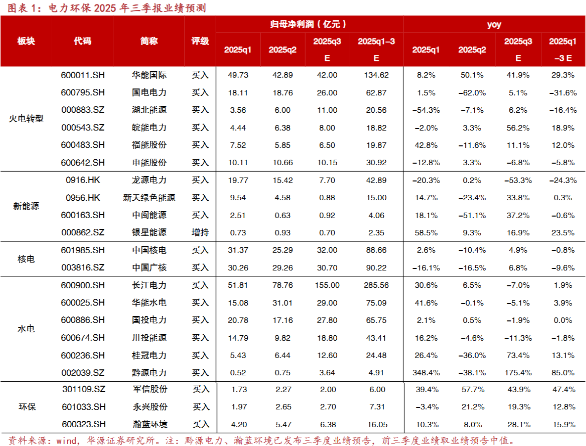 火电普遍改善,从已披露的公告看,预计三季度火电业绩改善最大的企业来自于年度电价下降幅度较小的区域,以及华东高温下电量增幅较强的区域,如京津冀、华中以及华东区域。考虑到四季度再次面临明年电价谈判的不确定性,关注目前电价水平较低、潜在较多装机增量、管理能力优秀的低估值企业。皖能电力、华能国际同比或高增。