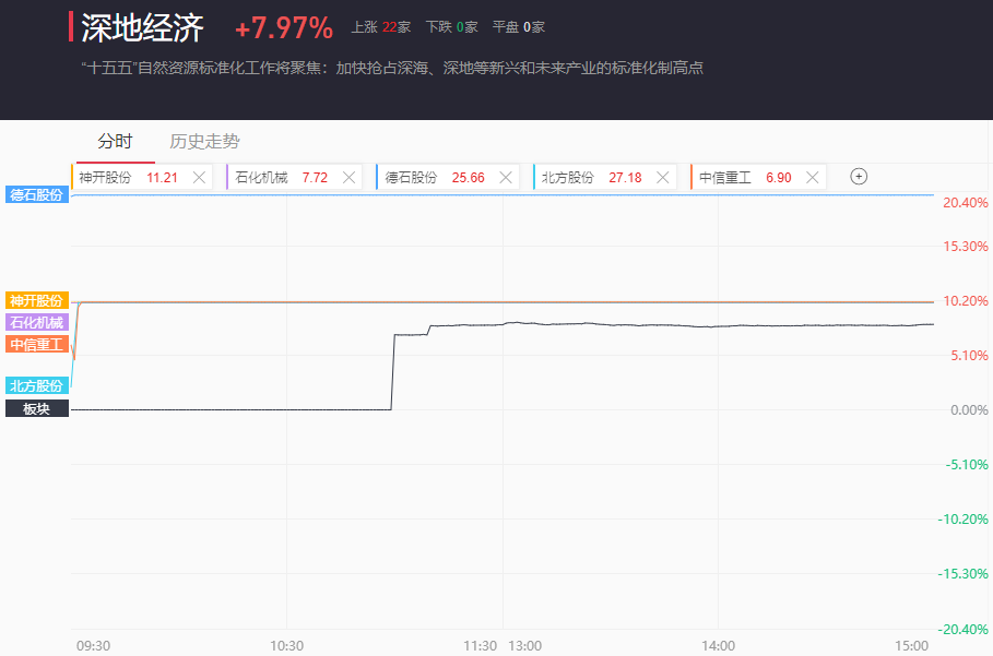 截至收盘,深地经济概念全天大涨近8%。