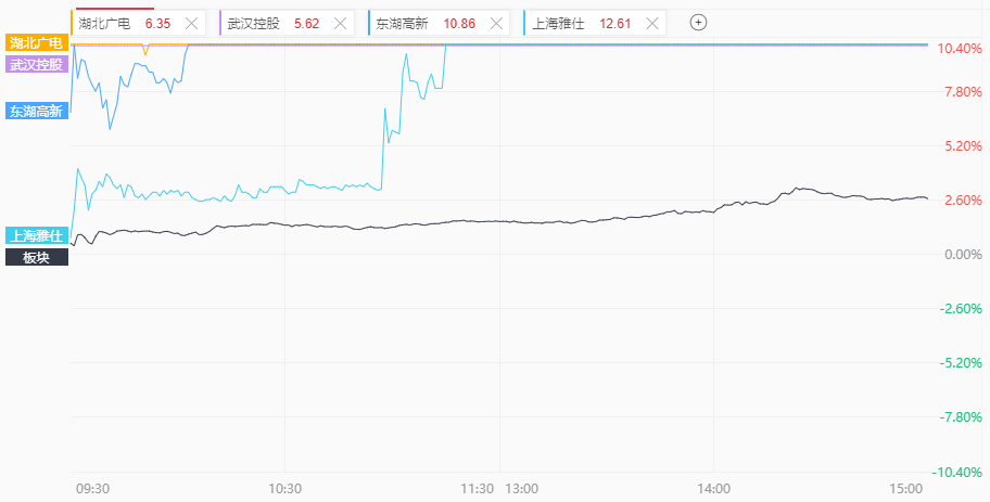湖北国企也开盘大涨,武汉控股、湖北广电一字开盘,微创光电(30CM)、理工光科(20CM)、东湖高新、三峡新材、中百集团、广济药业等纷纷涨停;