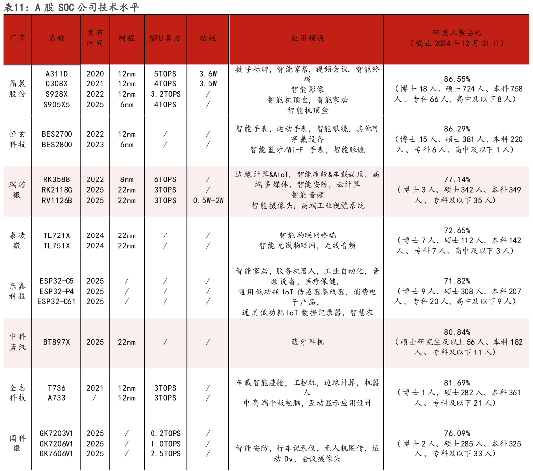 ①SoC:关注泰凌微、晶晨股份、恒玄科技、瑞芯微、乐鑫科技等。