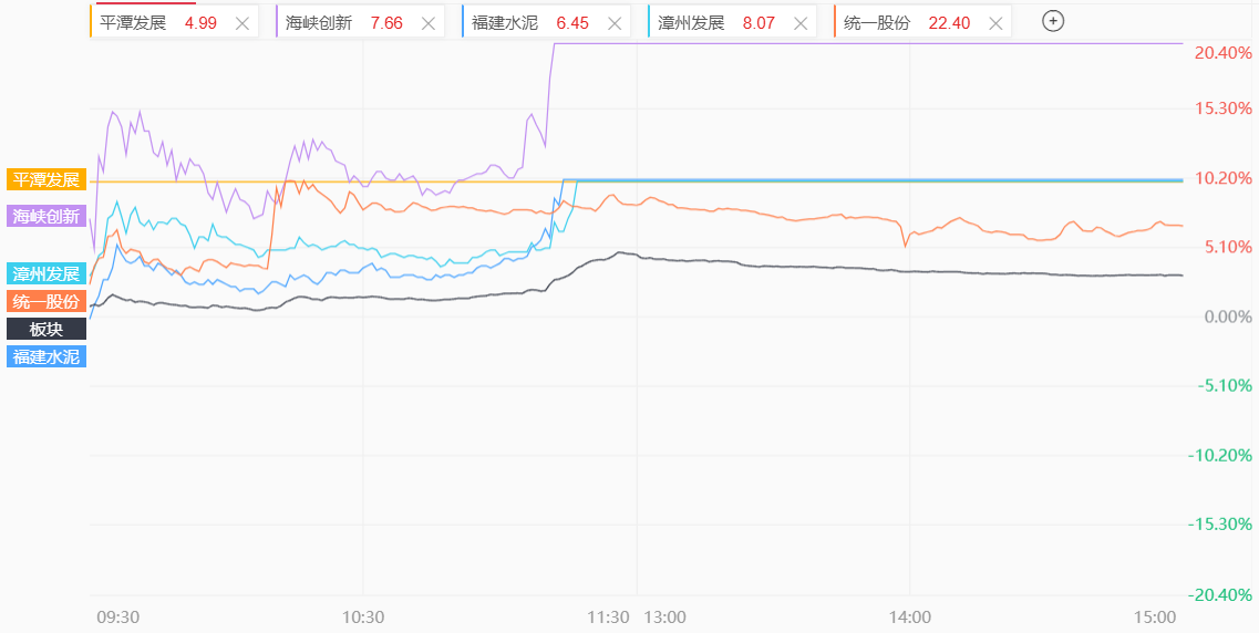 海西概念盘中爆发,平潭发展、达华智能3连板,海峡创新(20CM)、金龙汽车、福建水泥、漳州发展、厦门钨业、永福股份(20CM炸)等纷纷涨停;