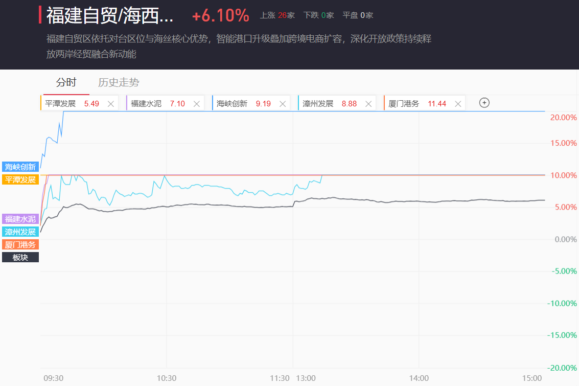 平潭发展、达华智能4连板,福建水泥、海峡创新(20CM)、漳州发展等集体2连板;
