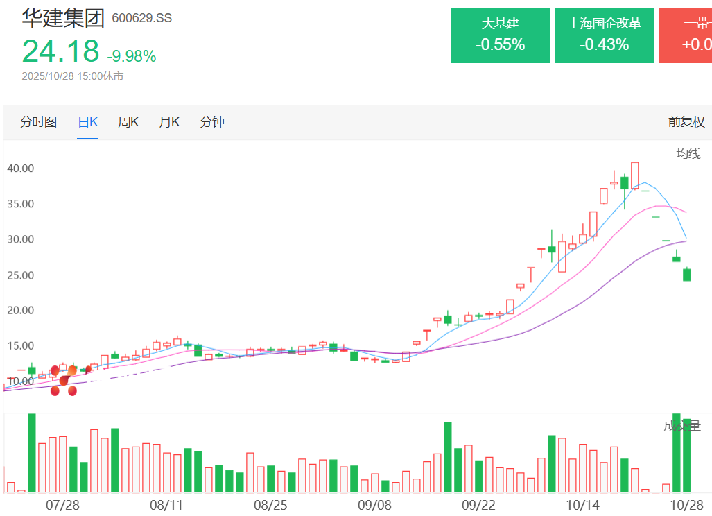 华建集团上周后三个交易日连吃3个一字跌停板,昨天继续核按钮放量跌停;