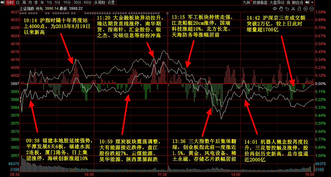 值得一提的是,沪指今日盘中重回4000点,让广大老股民梦回十年前,同时也让新股民获得了“4000点体验卡”。