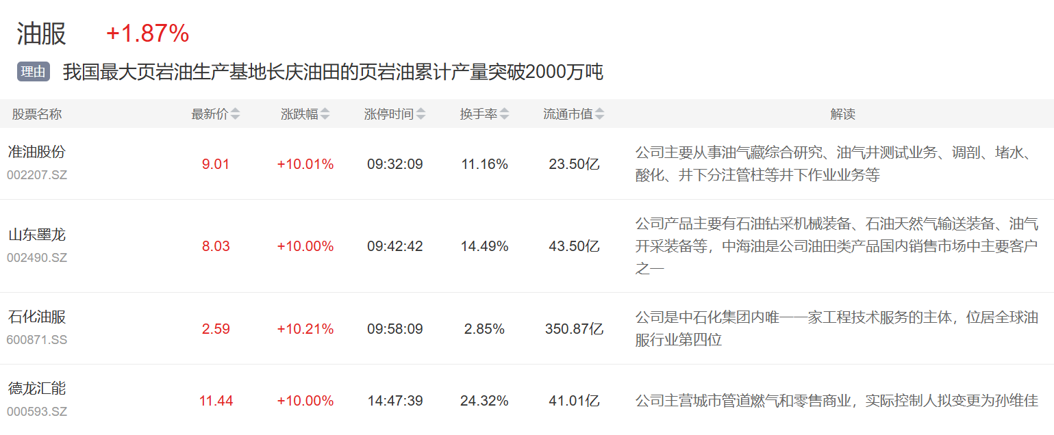 另外东吴证券指出,近年来国内油服设备龙头中东地区订单均实现爆发式增长,迎来密集业绩兑现期,展望未来,中东油服市场规模为千亿美元级,其中油服设备市场至少为百亿美元级。中国油服设备公司目前在中东尚处于起步阶段,市场份额占比较低,成长空间大。