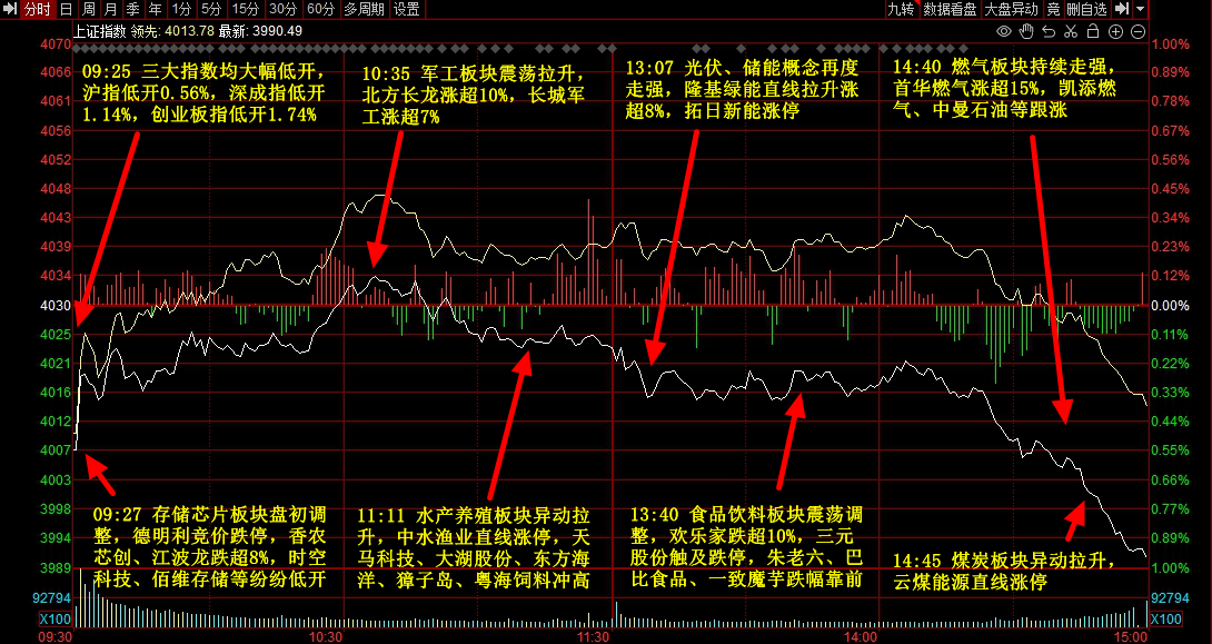 市场全天震荡调整,沪指失守4000点,创业板指跌近3%。海南板块逆势走强,海马汽车、海南矿业等多股涨停。燃气、煤炭板块尾盘拉升,首华燃气、云煤能源等封板。福建本地股反复活跃,平潭发展、三木集团等十余股涨停。下跌方面,存储芯片板块调整,同有科技、佰维存储跌超10%;食品等消费股走低,三元股份跌停,欢乐家跌超10%。个股跌多涨少,沪深京三市超3300股飘绿,今日成交1.98万亿。