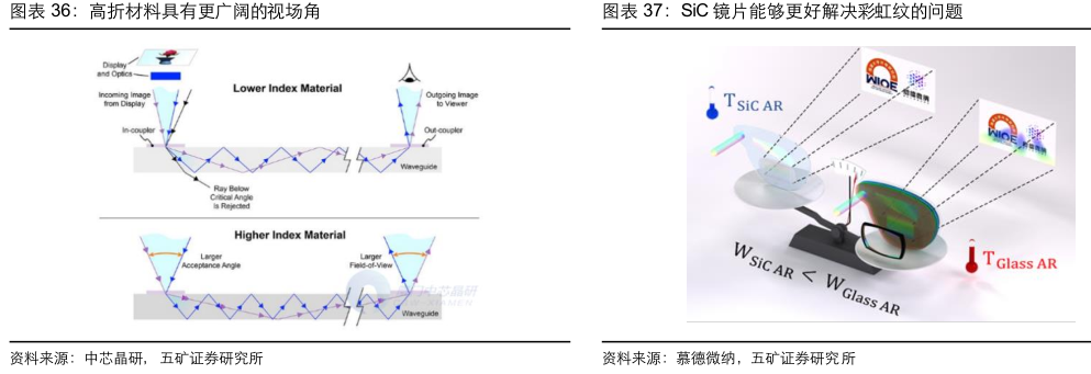AR产业中,SiC高折射率特性使其成为光波导片理想基底,可扩大视场角、解决彩虹纹问题,推动AR眼镜轻量化与全彩化。