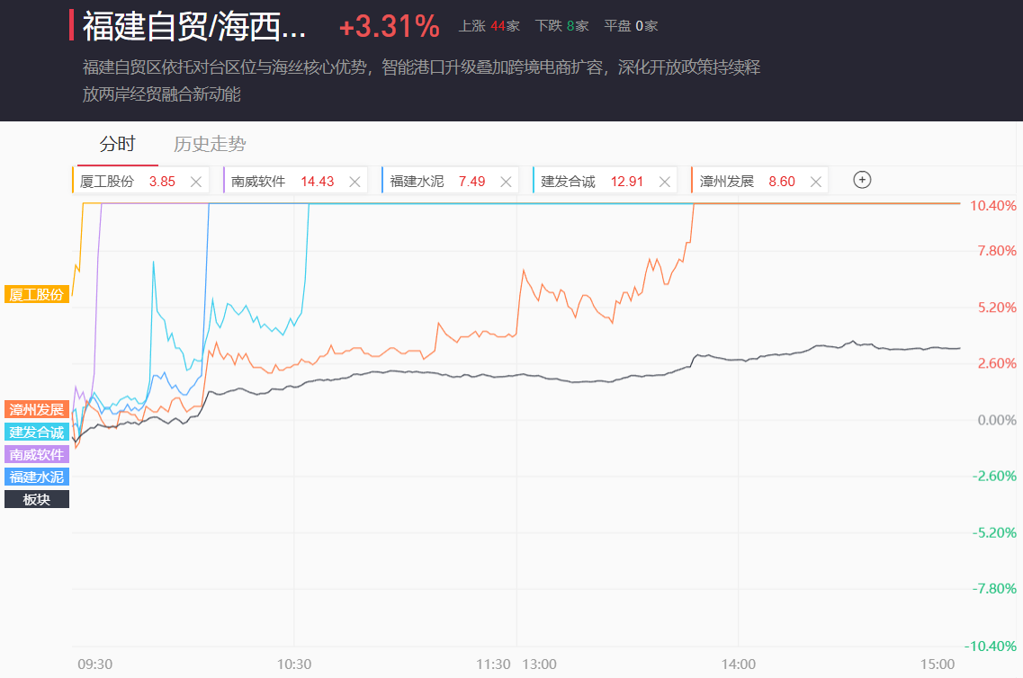 福建本地股全天单边震荡走强,最终收涨3.31%。