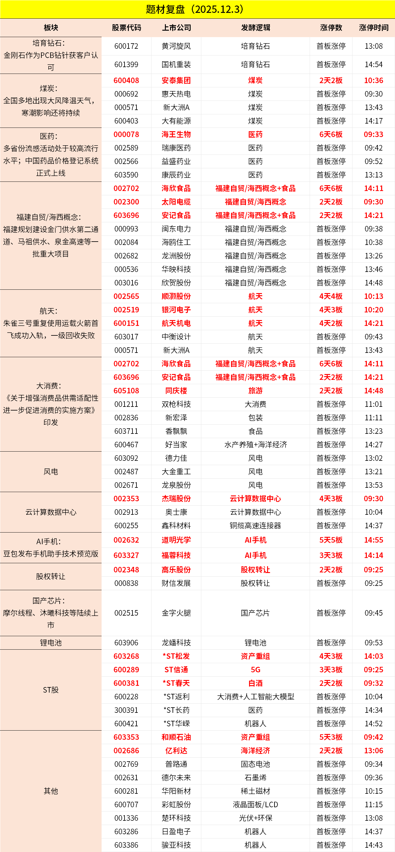 除上述热点外,航天、AI手机等继续分化;风电、大消费局部活跃;跌幅方面,光通信、锂电池、福建高位股跌幅居前。