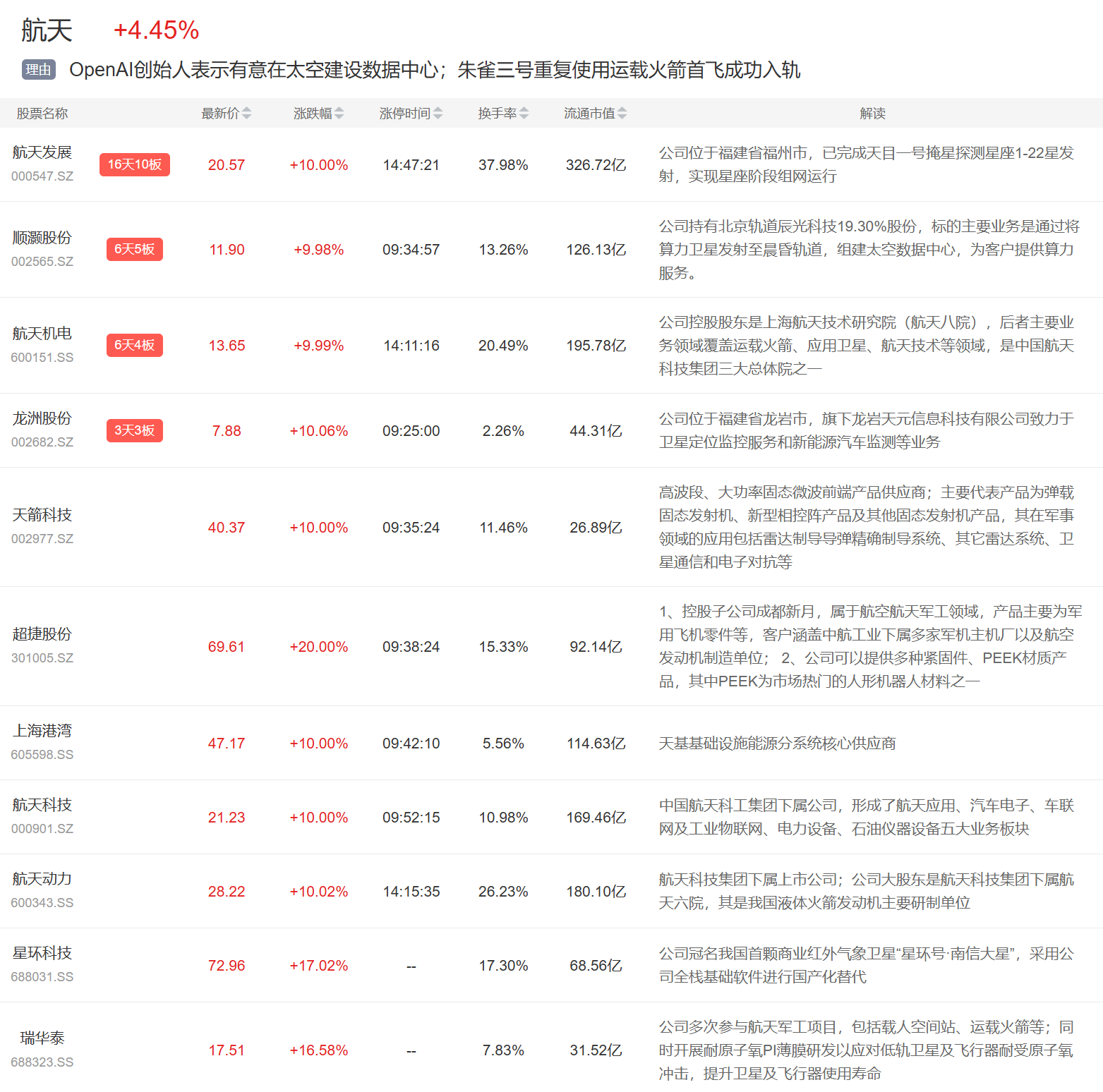 航天板块今日再度爆发,航天发展、顺灏股份、航天机电、龙洲股份等多股涨停。