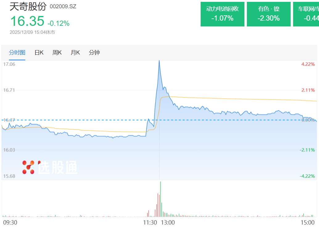 消息发布后,和银河通用合资成立公司的天奇股份水下极速拉升,上午收盘前收涨4.2%。