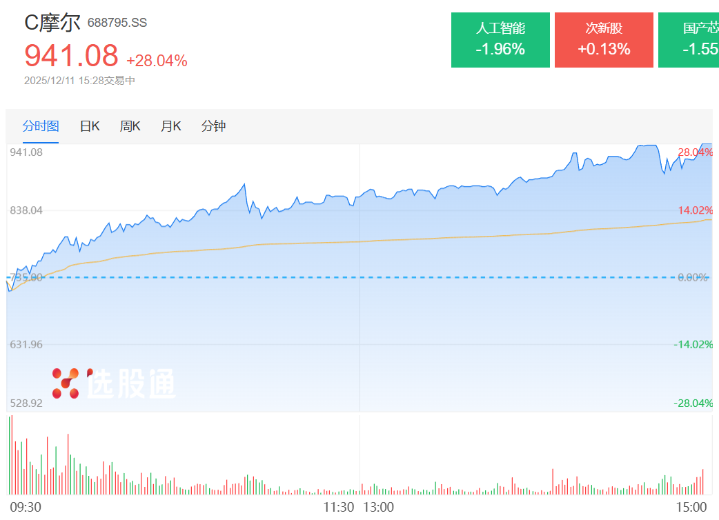 最终摩尔线程以日内最高价收盘,大涨28.04%,再度刷新历史新高。