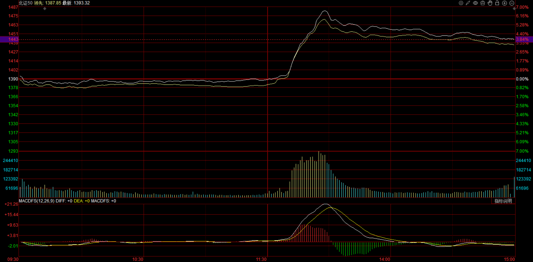 今日午后,伴随着指数开始回落,北证50指数开始大幅暴拉。