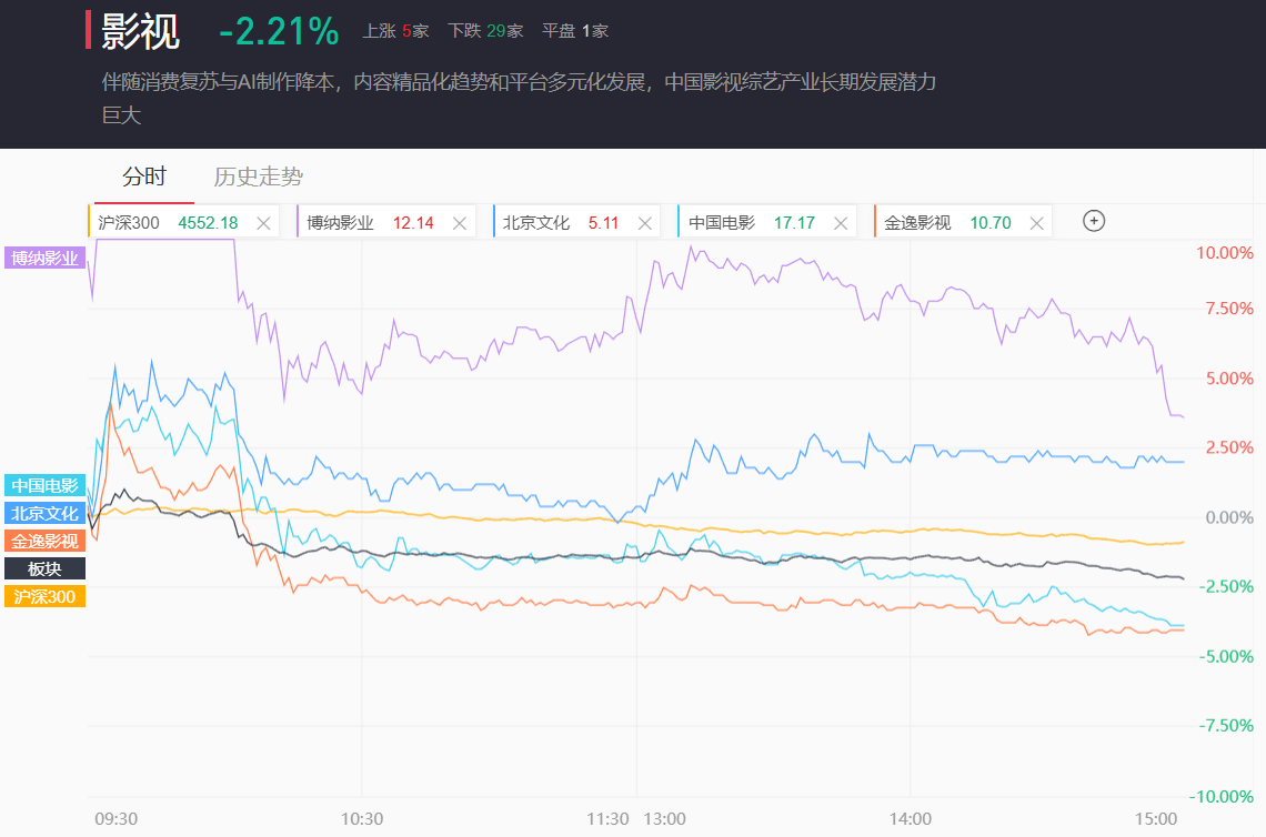 早盘带动北京文化、华策影视、中国电影、金逸影视等短暂大幅脉冲。