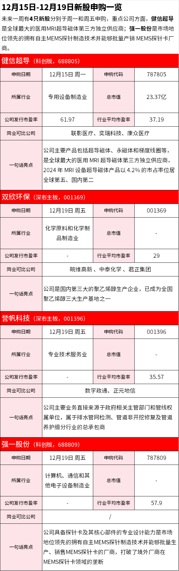 【IPO雷达】12月15日-12月19日新股申购一览