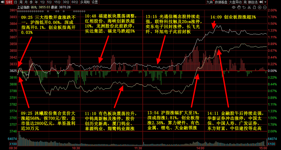 结果下午一会没看,最后指数居然大涨,仿佛一切都欣欣向荣。