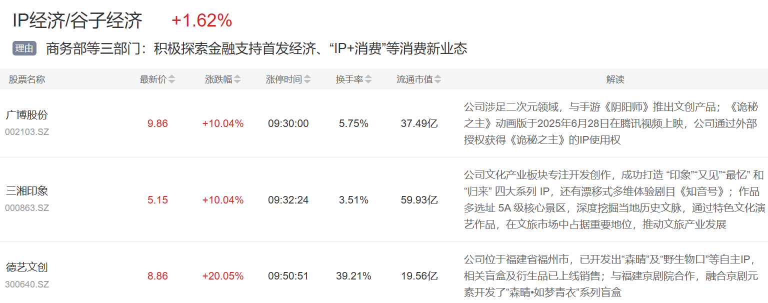 上海证券认为,在悦己需求与国产IP崛起等因素的驱动下,“谷子经济”正全面开花,通过重塑消费主权与升级线下生态,有望成为中国新消费的核心引擎。其产业链以“IP为核”实现国货破圈,依托多元渠道与二次元商业体激活增长动能。竞争格局上,国产势力正以差异化IP生态位挑战日本领衔、国际巨头割据的行业格局,加速竞逐海外市场,打造世界级IP。另外,谷子经济对新消费的影响甚远,以“国产IP全球化”为支点,引领文化出海浪潮,重构全球消费产业价值链。