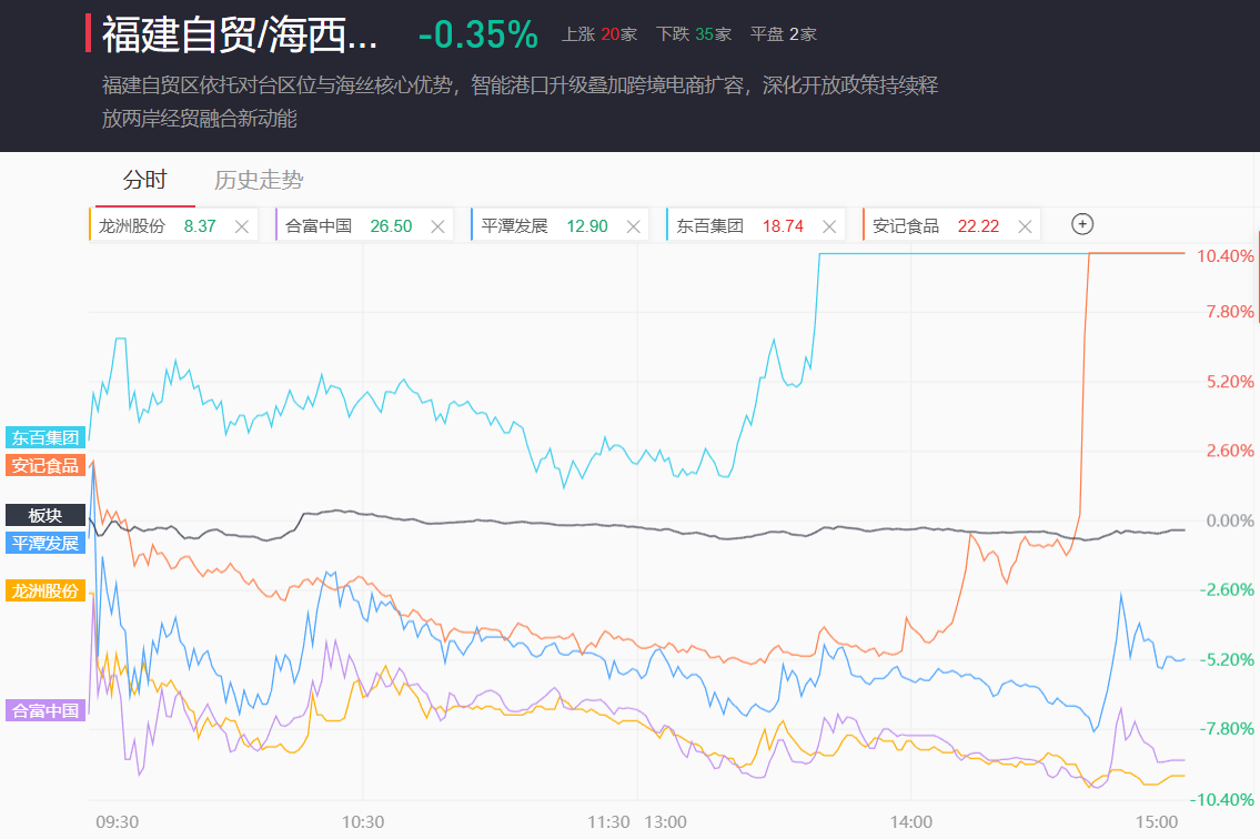 福建板块今日整体表现震荡,最终小幅收跌0.35%。