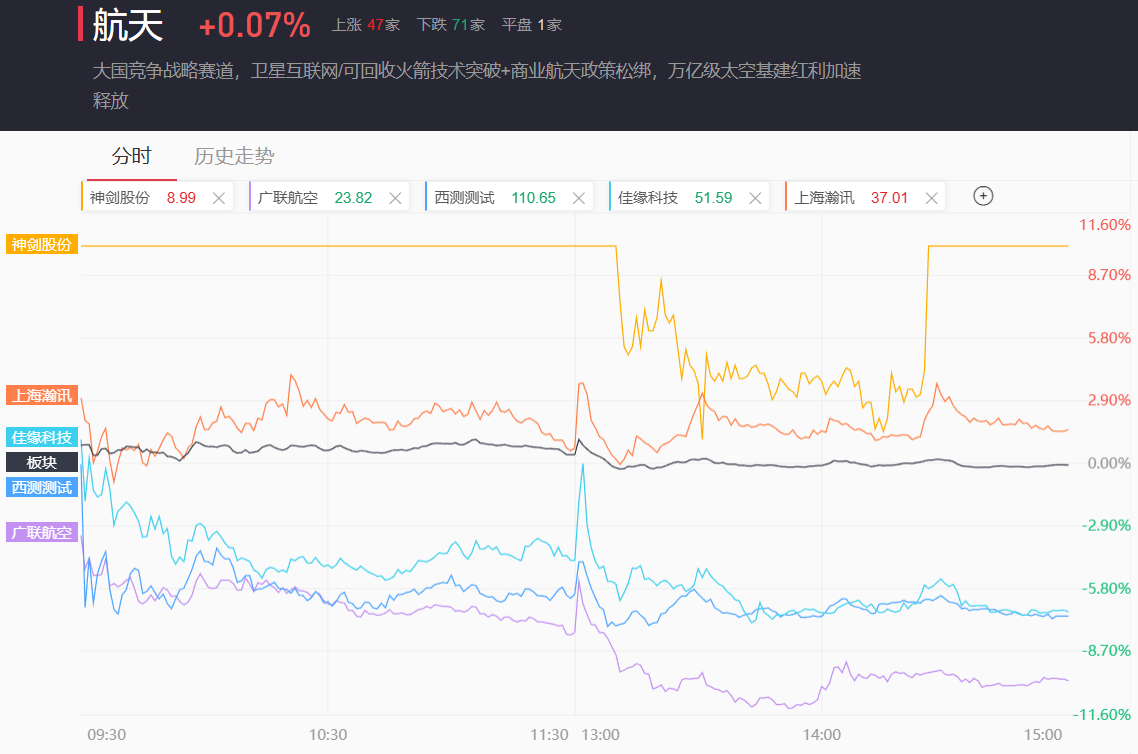 商业航天板块今日整体迎来大幅分化。