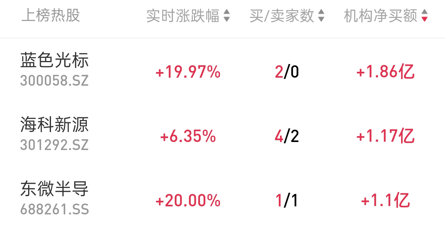 龙虎榜机构热股
