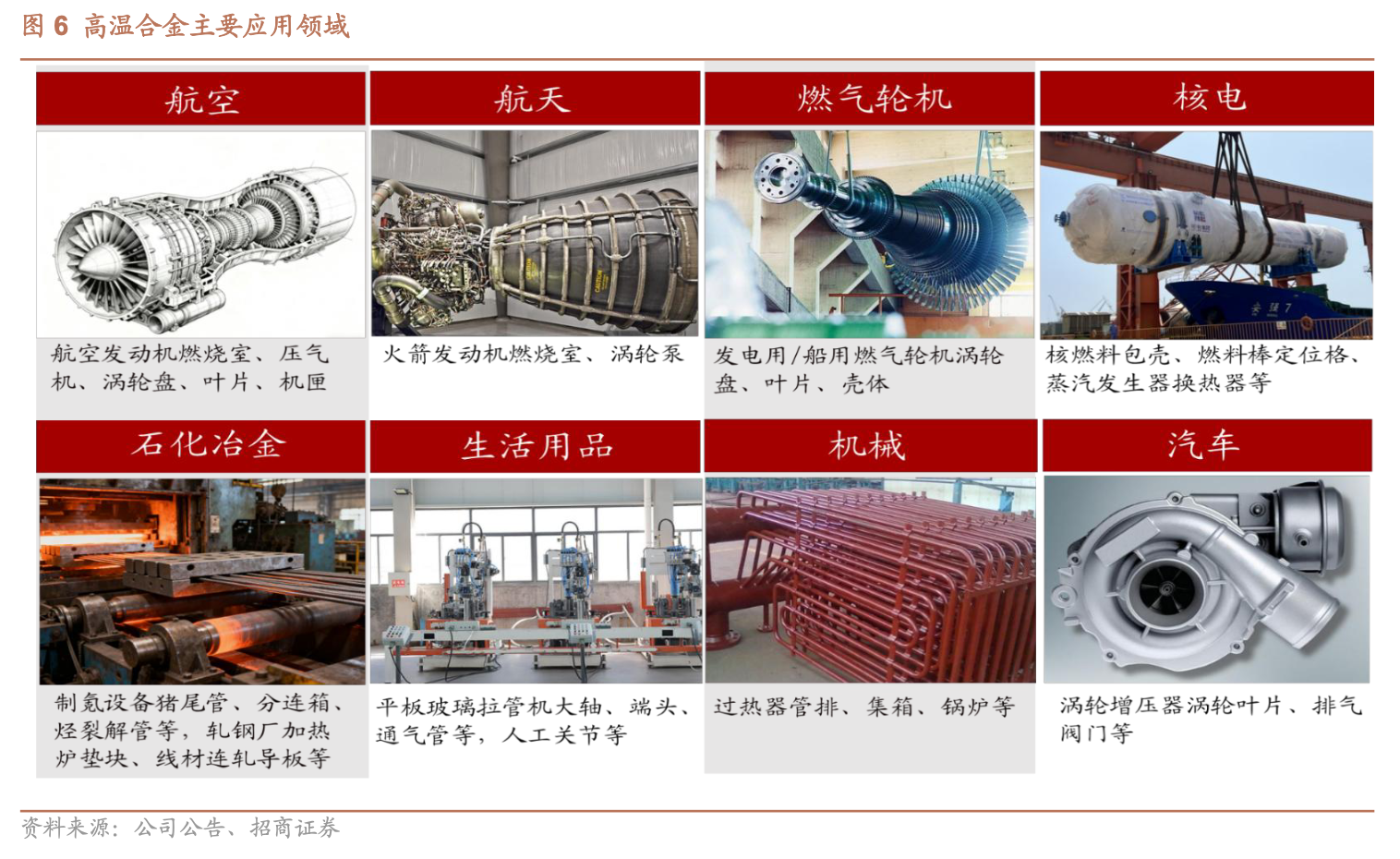 1)高温合金以及优良的金属属性应用于高端场景