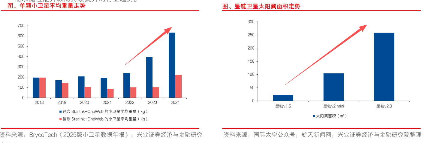 以SpaceX星链为例,其V1.5版本太阳翼面积仅超20㎡,而V2.0版本预计将突破250㎡。更高分辨率传感器等设备的加装,直接带动了单星功率需求的爆发。