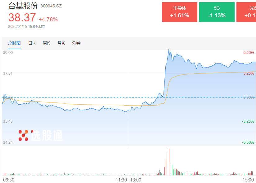 该消息被媒体轮番推送后,台基股份开始放量爆拉,盘中一度涨超7%,最终收涨4.78%。