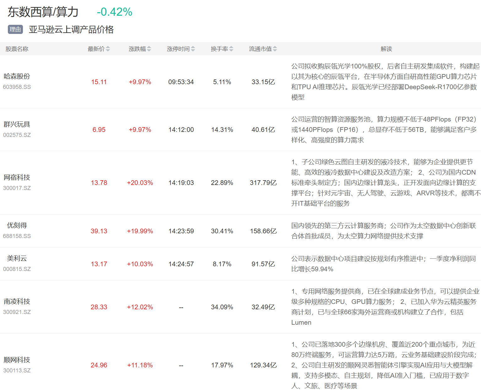 云计算板块今日上涨,哈森股份、群兴玩具、网宿科技等多股涨停。