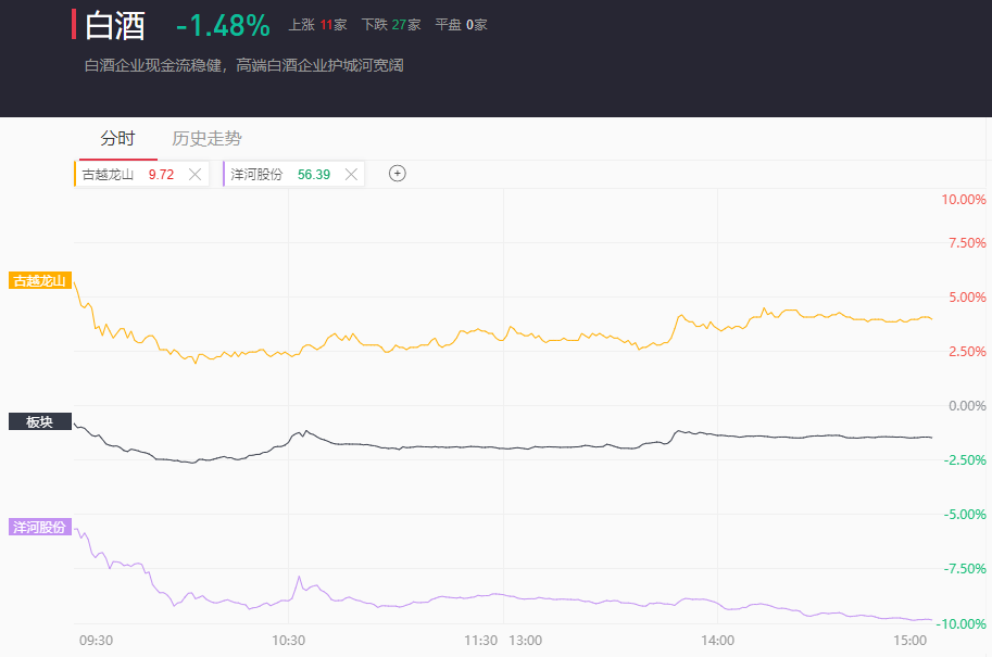 白酒板块早盘一度跌超2.5%,最终收跌1.48%。