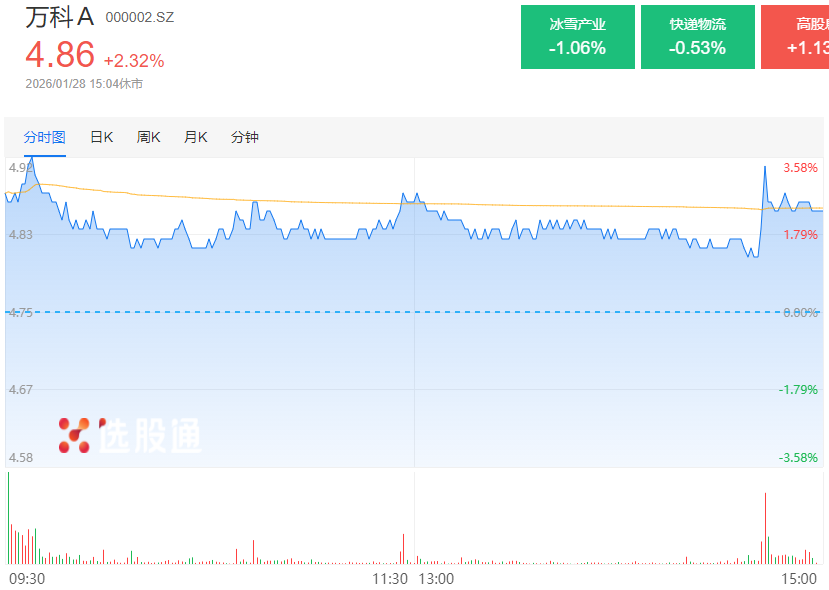 今日万科A、万科企业小幅高开后全天震荡,尾盘阶段因“不要求每月上报三条红线指标”的消息稍稍探头,最终分别收涨2.32%、3.6%。
