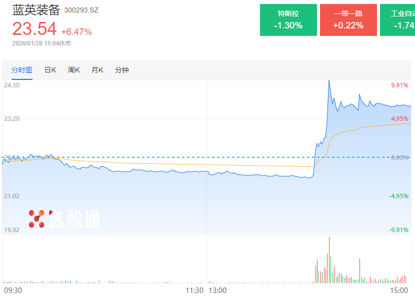 受消息刺激,蓝英装备直线拉升,股价一度从水下爆拉12个点,最终逆势大涨6.47%。