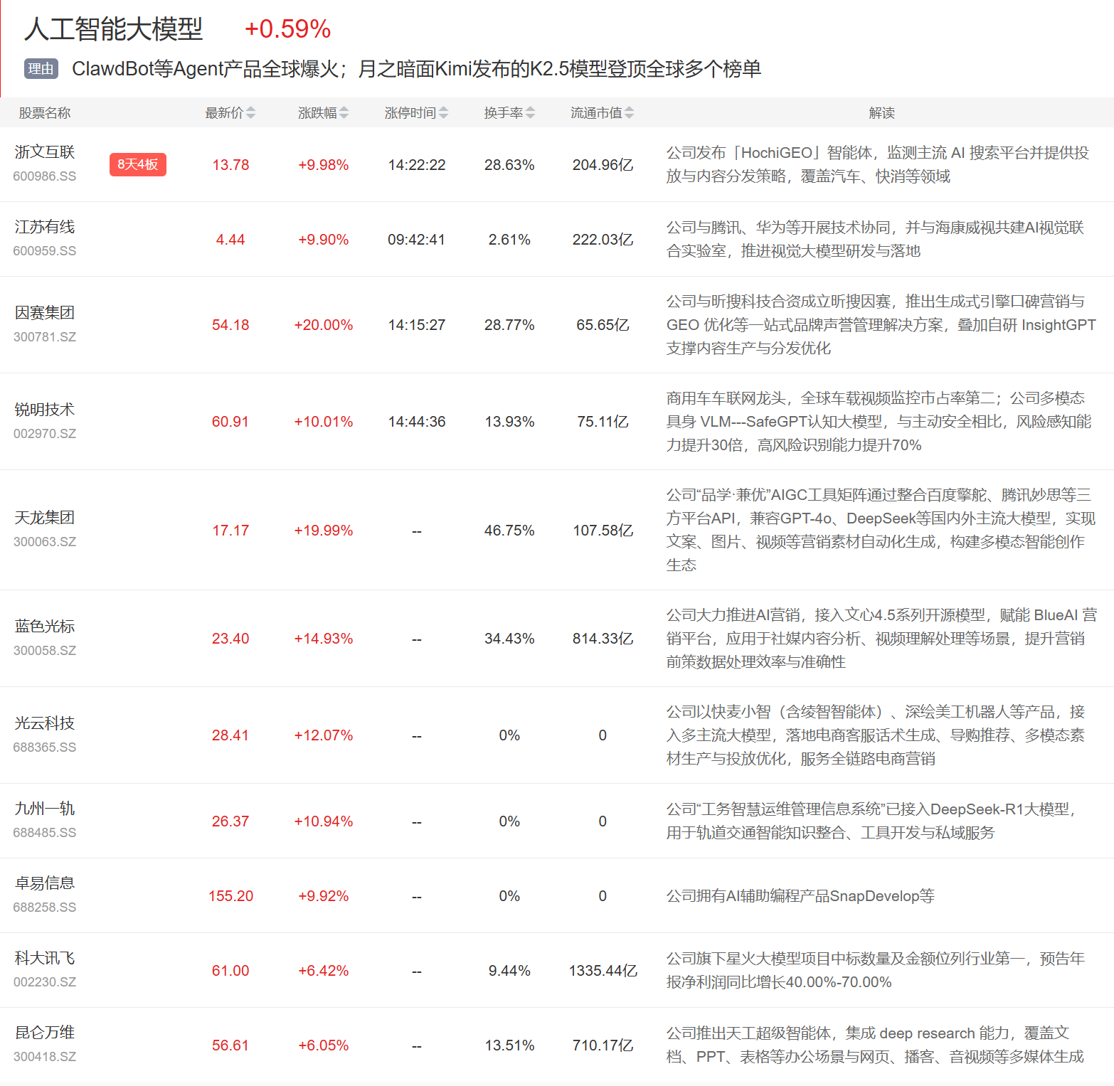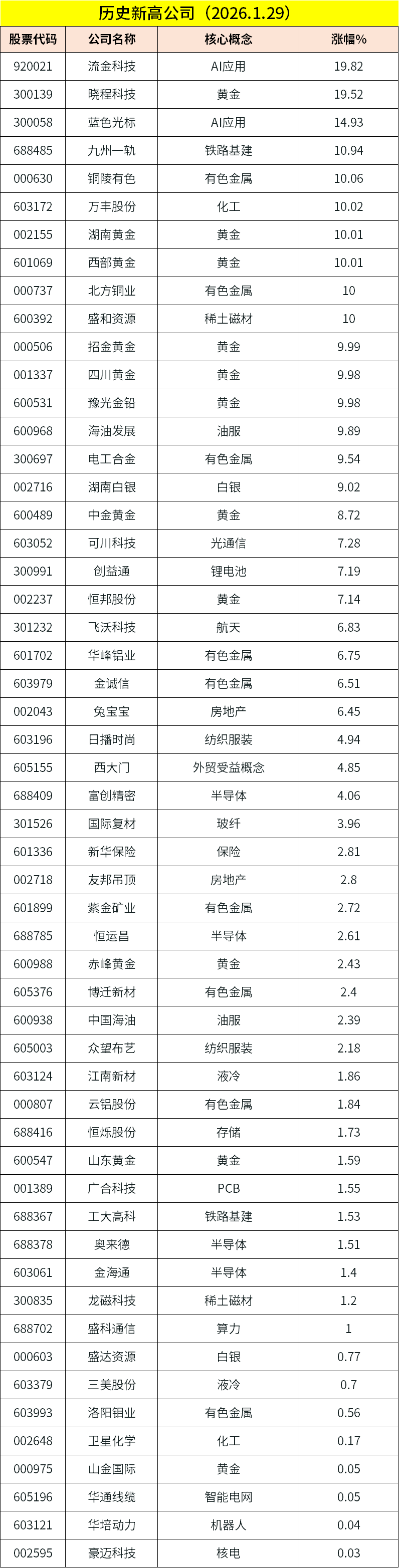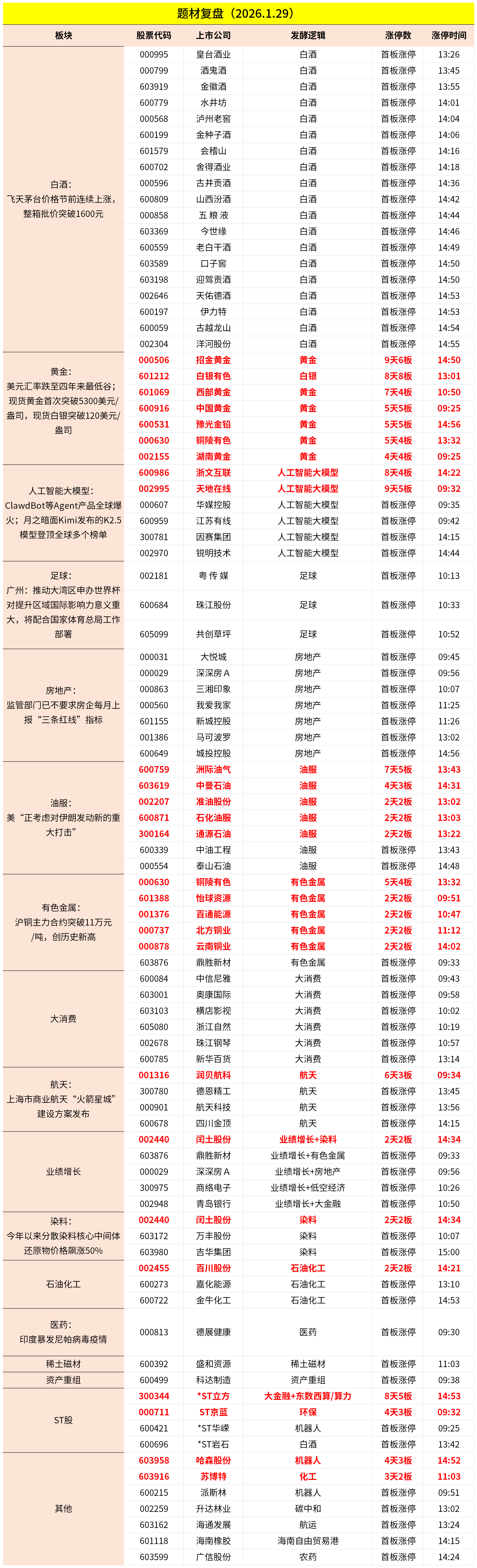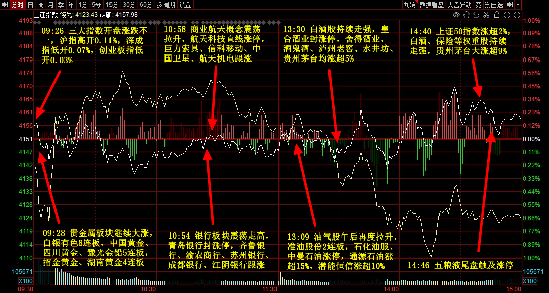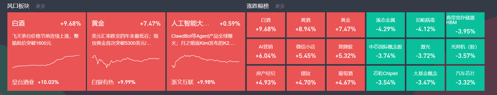 除上述热点外,足球概念、有色金属、航天等局部活跃;跌幅方面,业绩暴雷、半导体等跌幅居前。